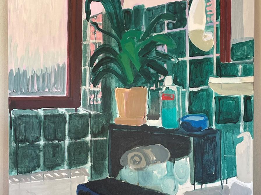 Marias malerier tør udfordre de typiske stilleben vi kender med frugtfade, blomster og lignende. Der er ikke meget stille liv og sirlige opstillinger i Marias billeder. Der er til gengæld kaos, børnefødselsdage og en havepool der lander som en ufo på terrassen. Virker det genkendeligt?